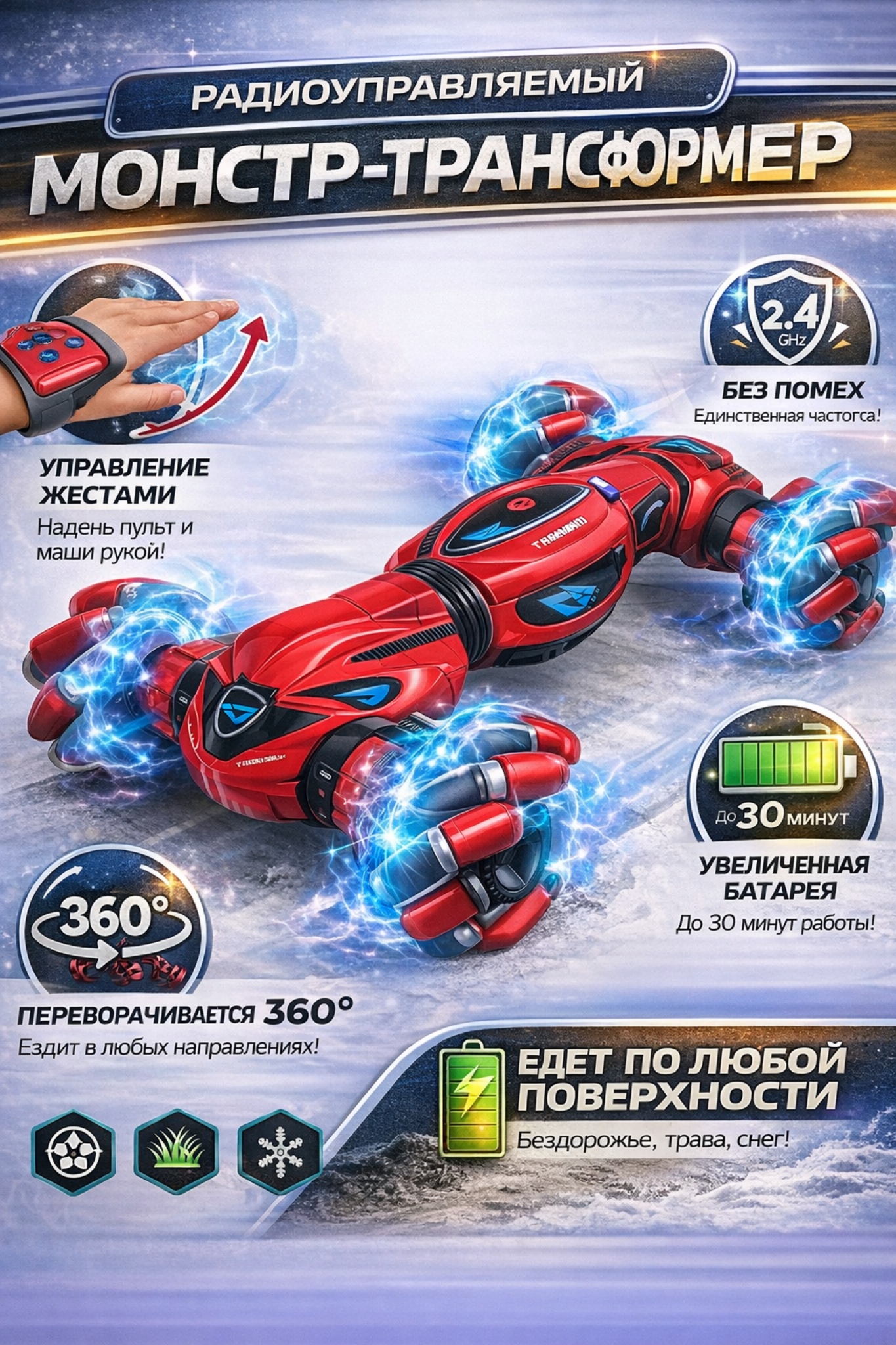 ✨ Эффектный дизайн: Футуристичный корпус цвета «металлик» дополнен светящимися глазами, что делает игру особенно эффектной в вечернее время.