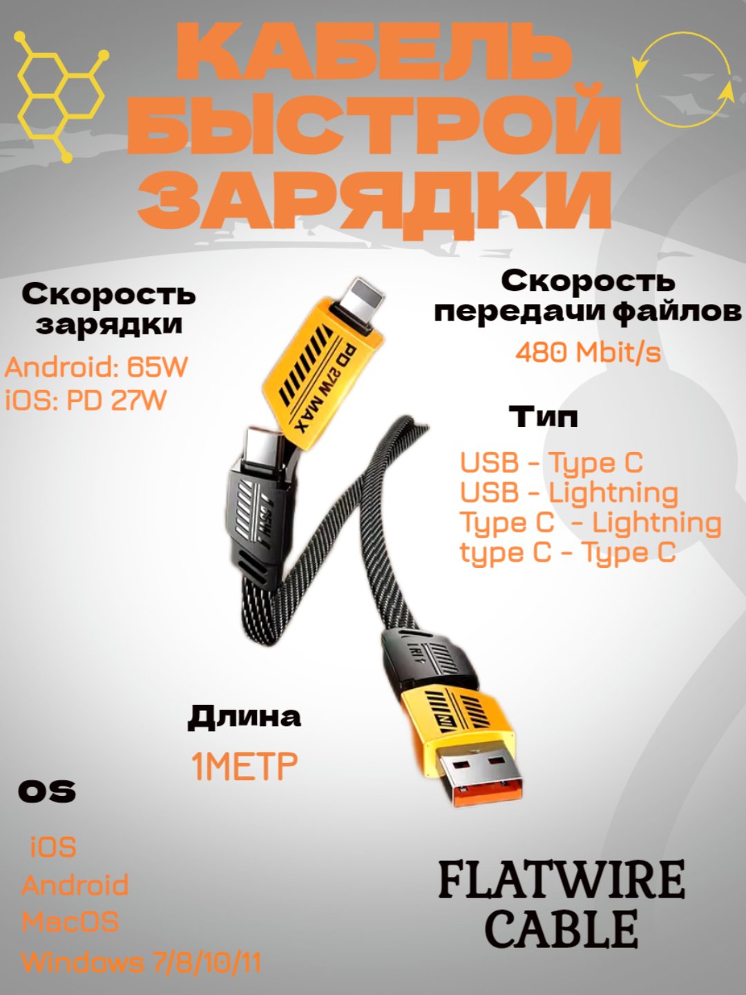 - 4 варианта зарядки: USB — Lightning, USB — Type-C, Type-C — Lightning, Type-C — Type-C
