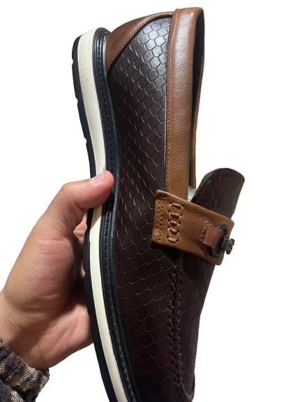 коричневые лоферы с тиснением под змеиную кожу и металлической фурнитурой