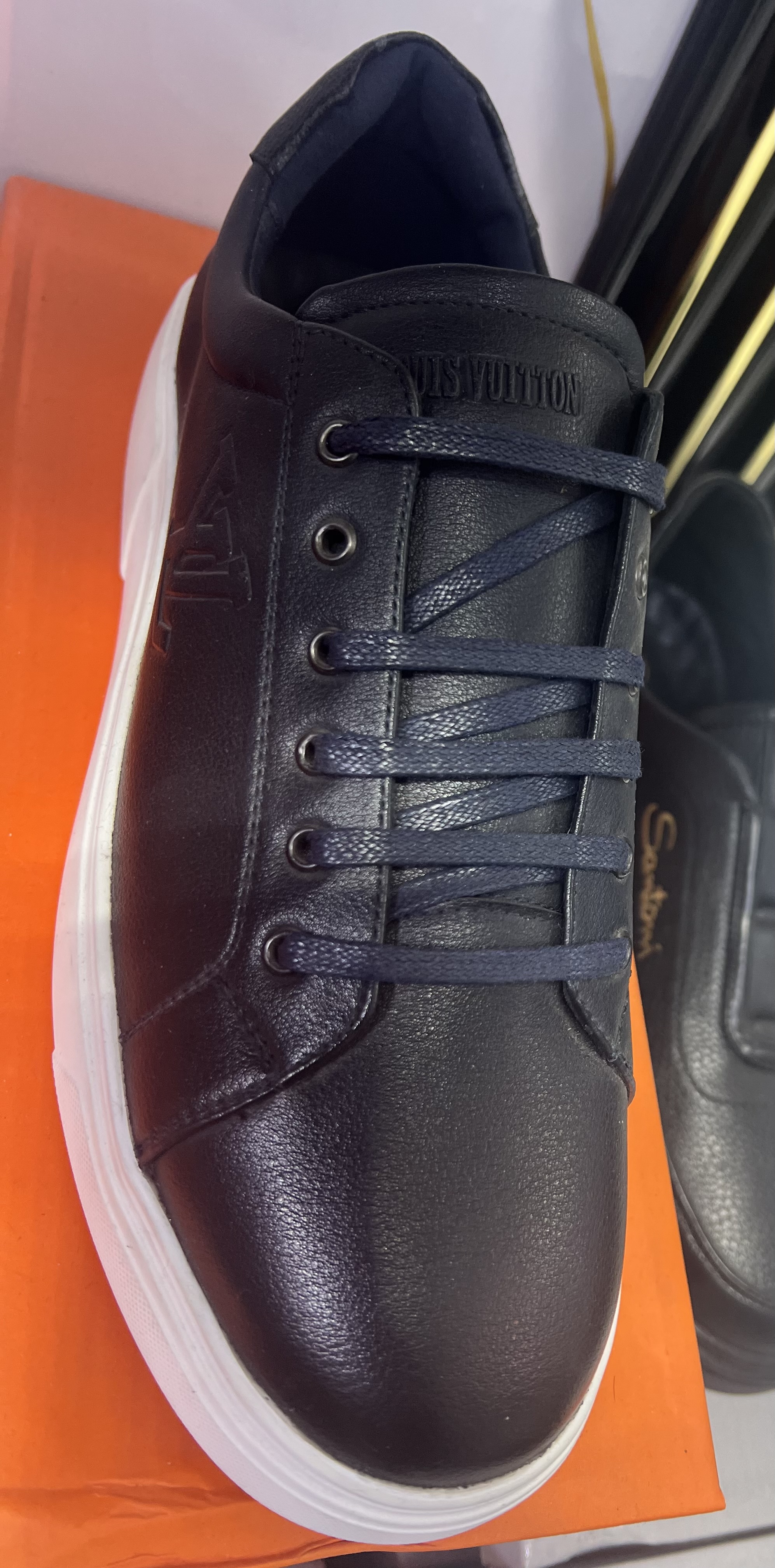 мужские кожаные кроссовки Louis Vuitton черного цвета с белой подошвой.