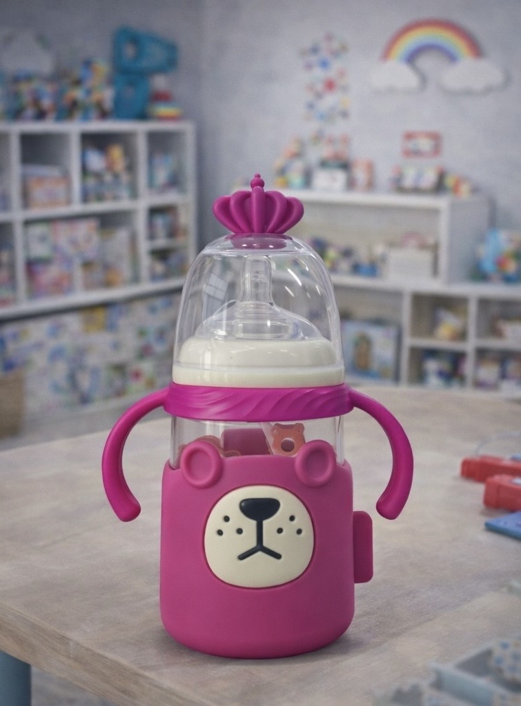 Милая и удобная детская бутылочка, созданная специально для малышей. Яркий дизайн с мордочкой мишки привлекает внимание ребёнка и делает процесс кормления приятным и комфортным