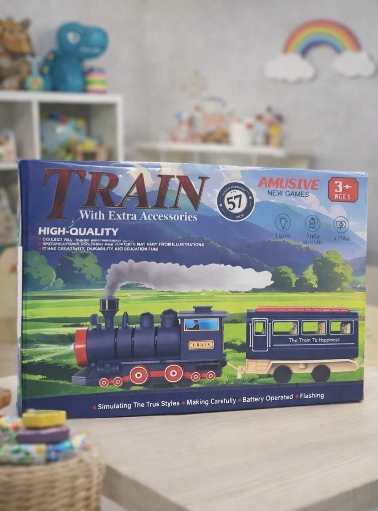Яркий и увлекательный игрушечный поезд с аксессуарами подарит ребёнку часы интересной игры и поможет развить воображение, моторику и координацию движений