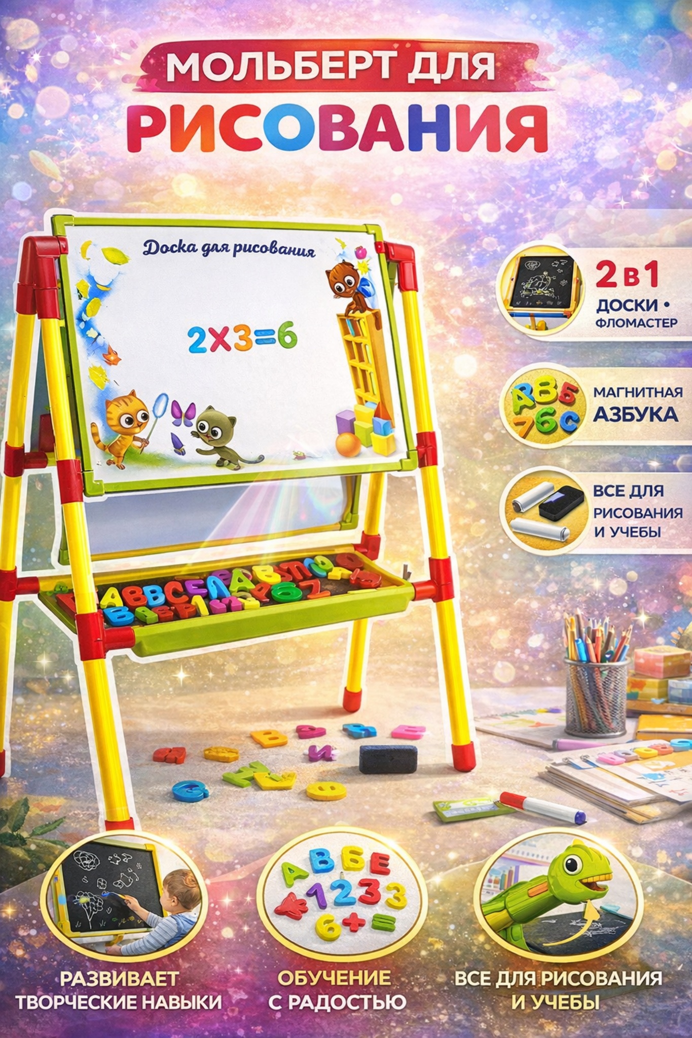 Прочный и устойчивый мольберт удобно устанавливается и подходит для использования дома.