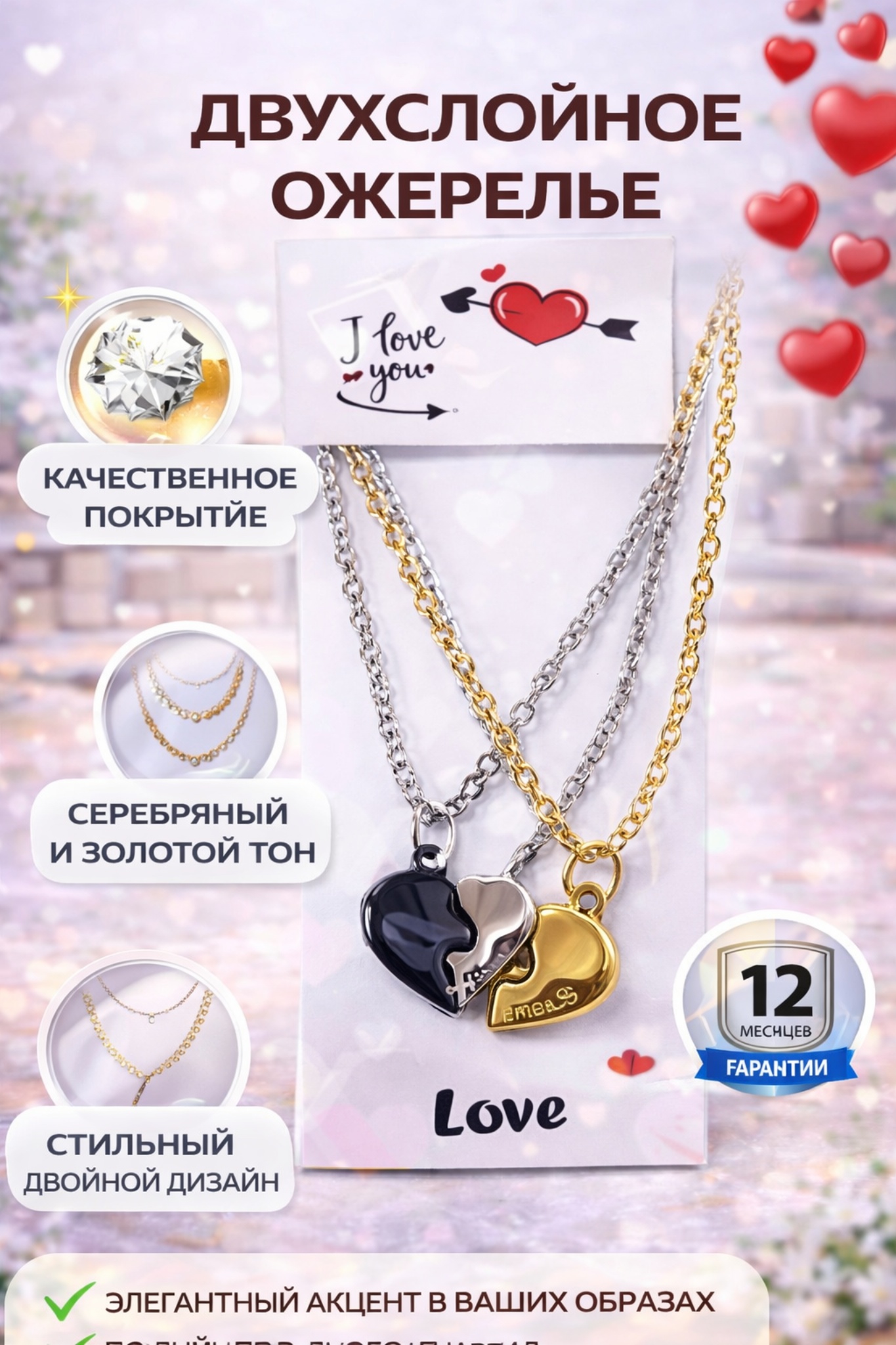 Стильная многослойность, создающая эффект глубины - Подвески в форме сердца