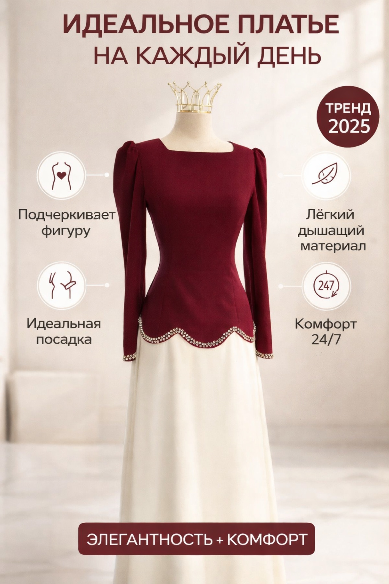 - Элегантное сочетание цветов: глубокий бордовый и нежный светлый низ