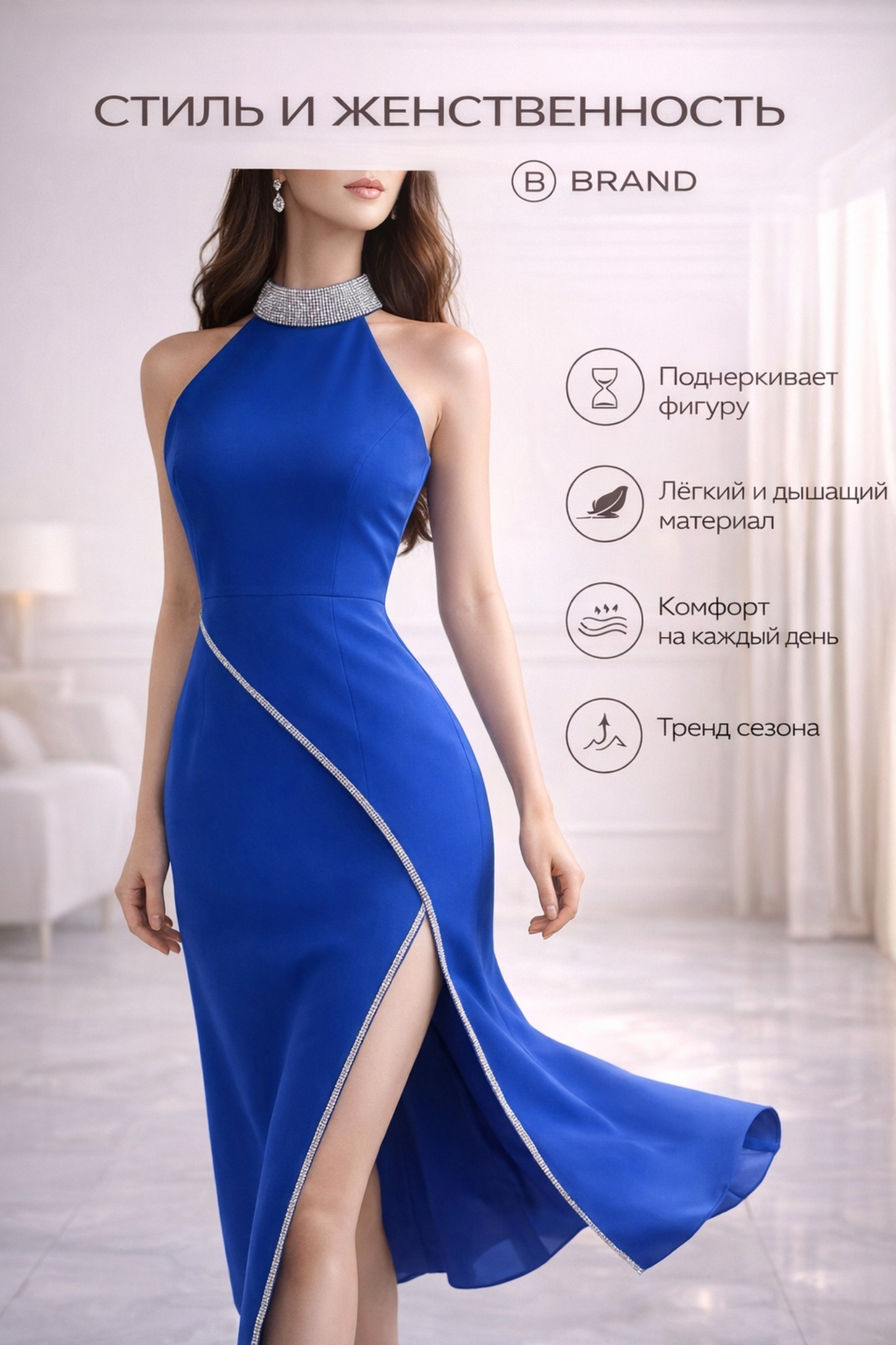 - Изящный разрез, добавляющий динамики образу