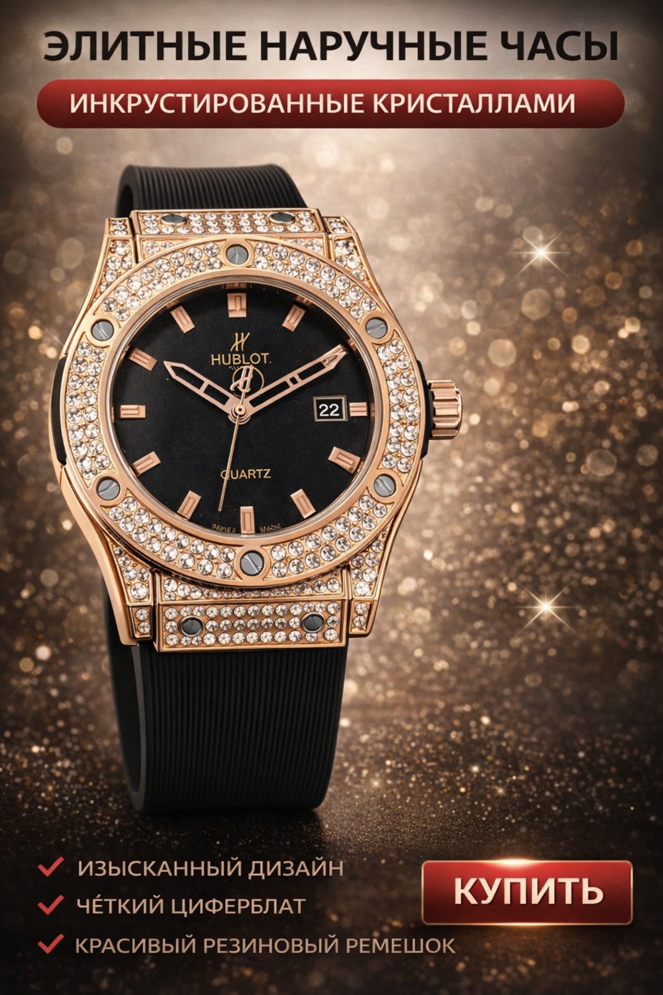Элегантный корпус с инкрустацией кристаллами делает часы стильным украшением и ярким акцентом любого образа.