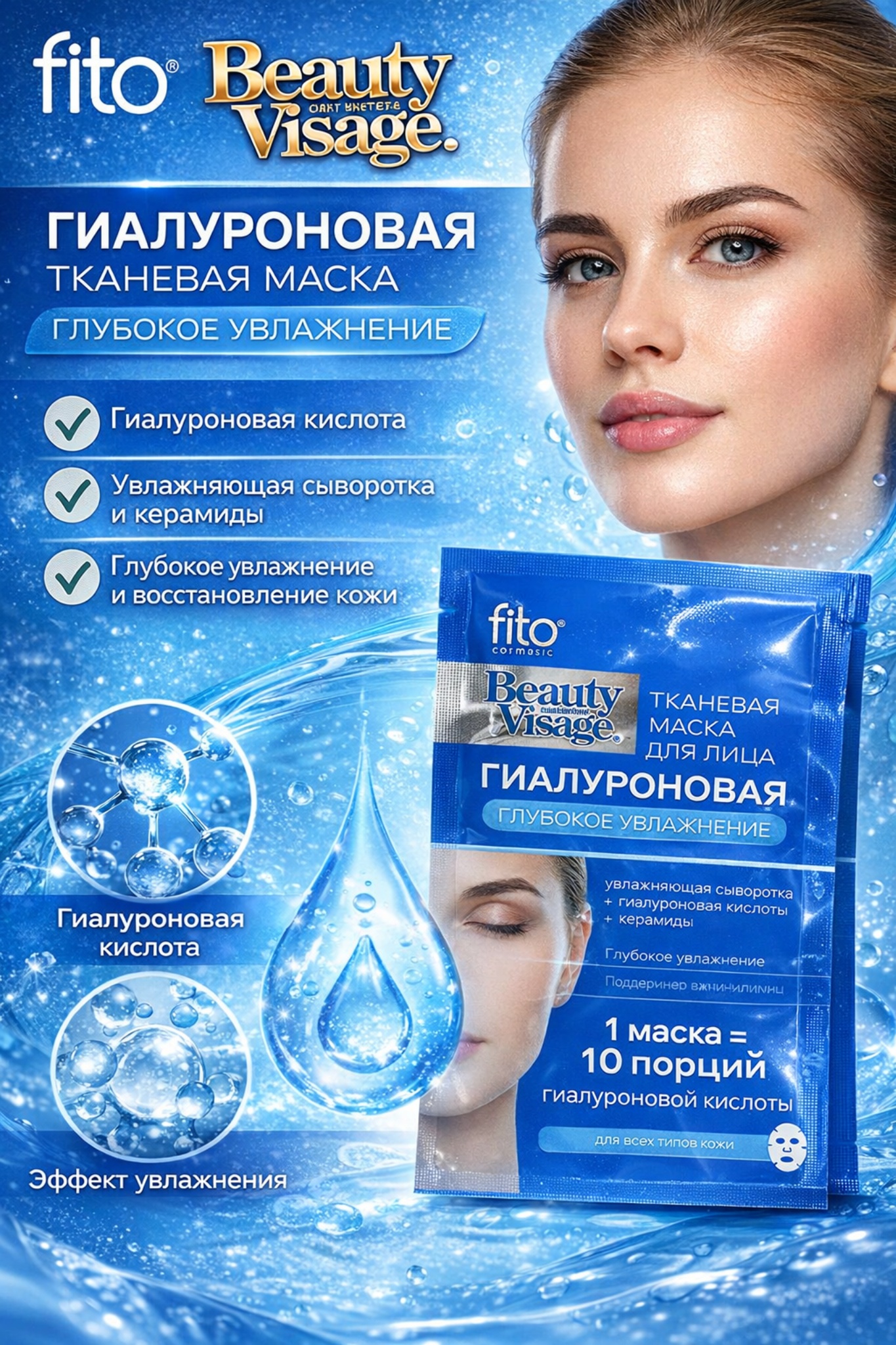 1 маска = до 10 порций гиалуроновой кислоты*