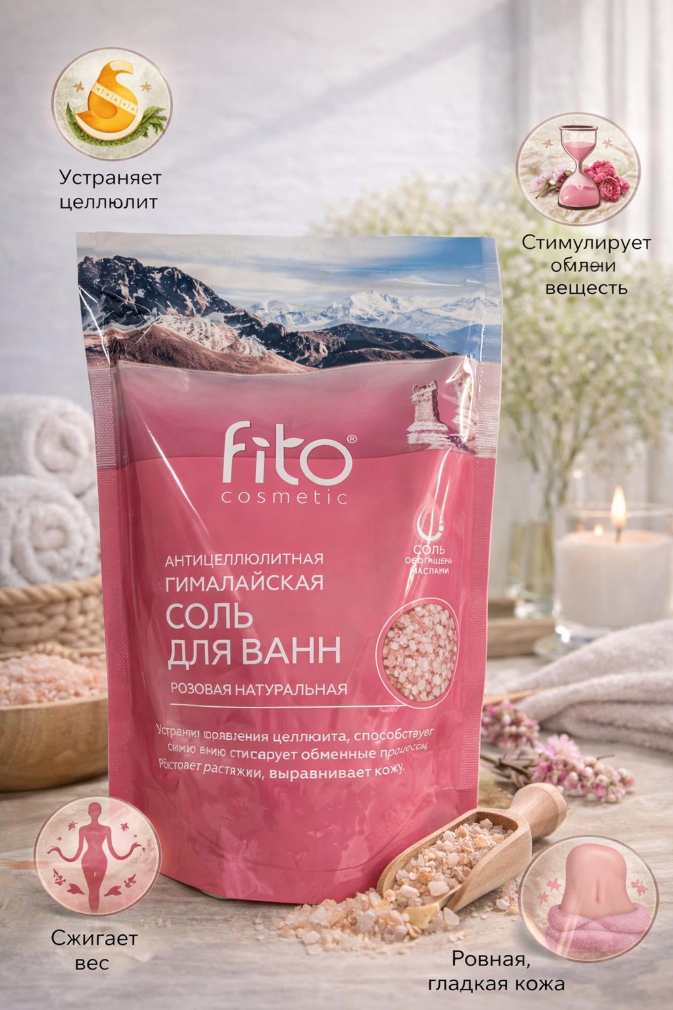 Содержит натуральную гималайскую розовую соль
