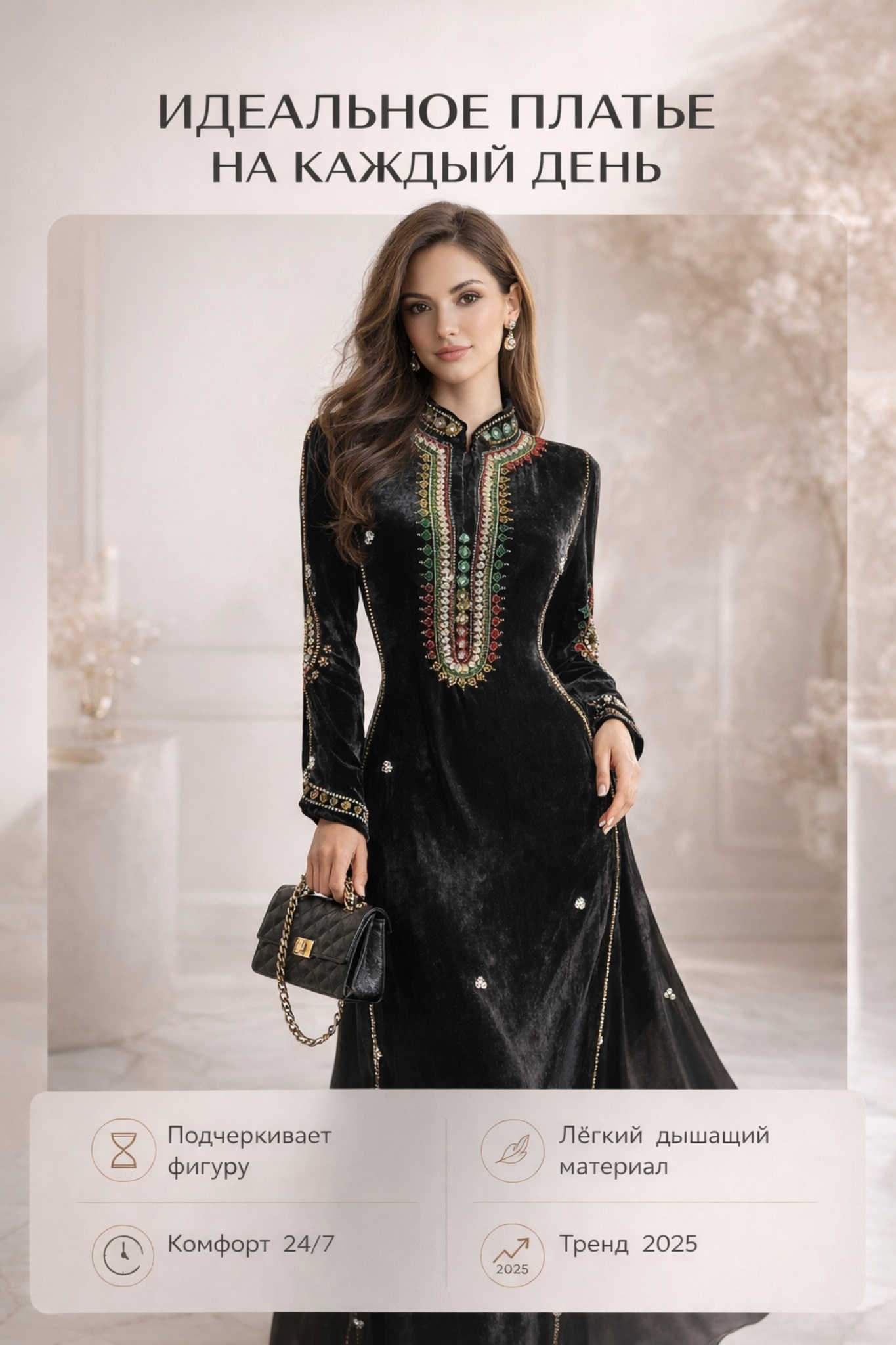 - Универсальный чёрный цвет — легко сочетать с аксессуарами