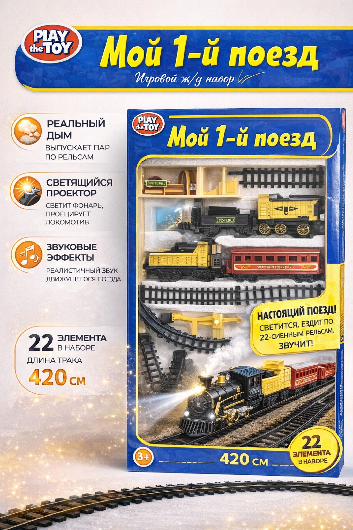 📦 В комплекте: локомотив, вагоны, элементы железной дороги