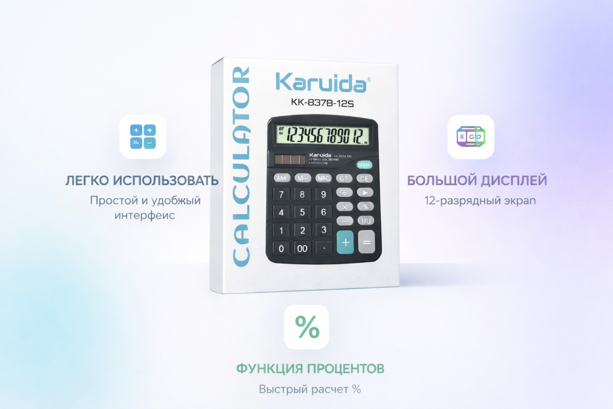 12-разрядный экран обеспечивает чёткое отображение чисел и облегчает работу с большими значениями.