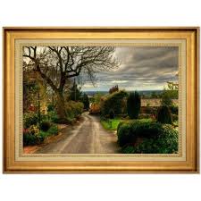 Картина из Ковров «пейзаж » сделано в Иране рамка из дерева ручной работы размер 85см на 65см На картине показана извилистая дорога, окруженная домами, деревьями и ухоженными садами.