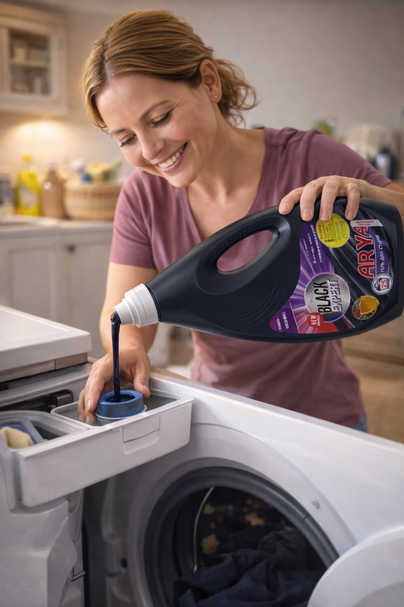 Гель мягко воздействует на волокна, помогая сохранить цвет и структуру одежды.