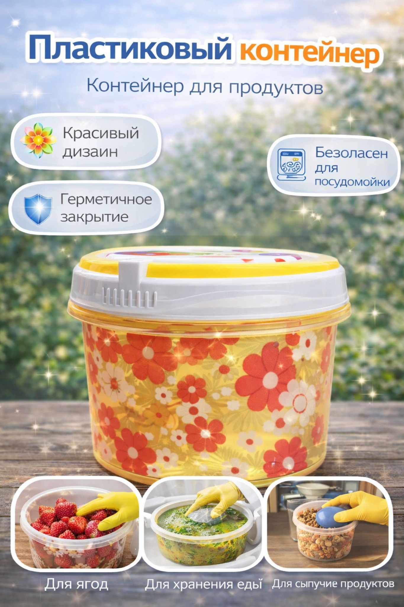 - 🥗 Подходит для хранения еды, закусок, сладостей