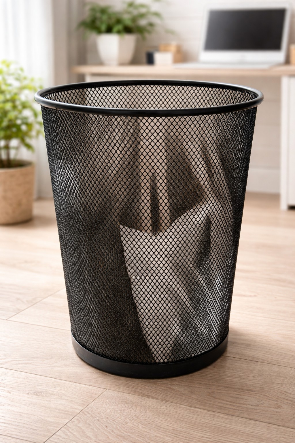 Прочная металлическая сетка устойчива к деформации, а усиленное основание обеспечивает стабильность при эксплуатации. Лаконичный дизайн в чёрном цвете гармонично вписывается в любой интерьер — от рабочего кабинета до домашнего офиса.