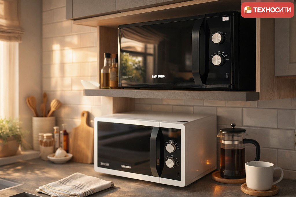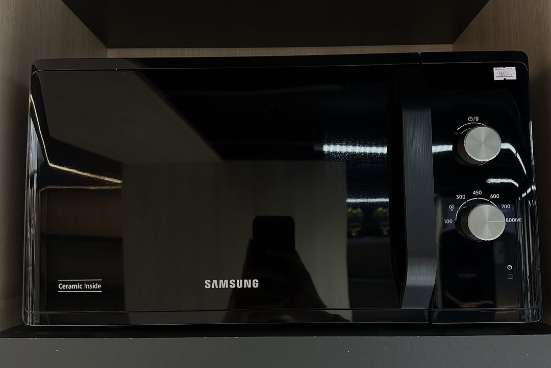 Надёжная микроволновка Samsung для повседневного использования. Быстро разогревает еду, легко чистится благодаря керамическому покрытию и отлично вписывается в современную кухню. Простое управление — включил и готово.