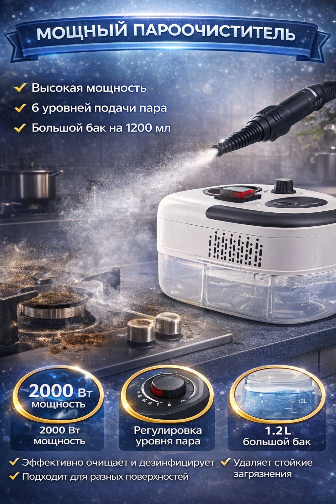 Высокая мощность 2000 Вт — быстрый нагрев и мощный поток пара