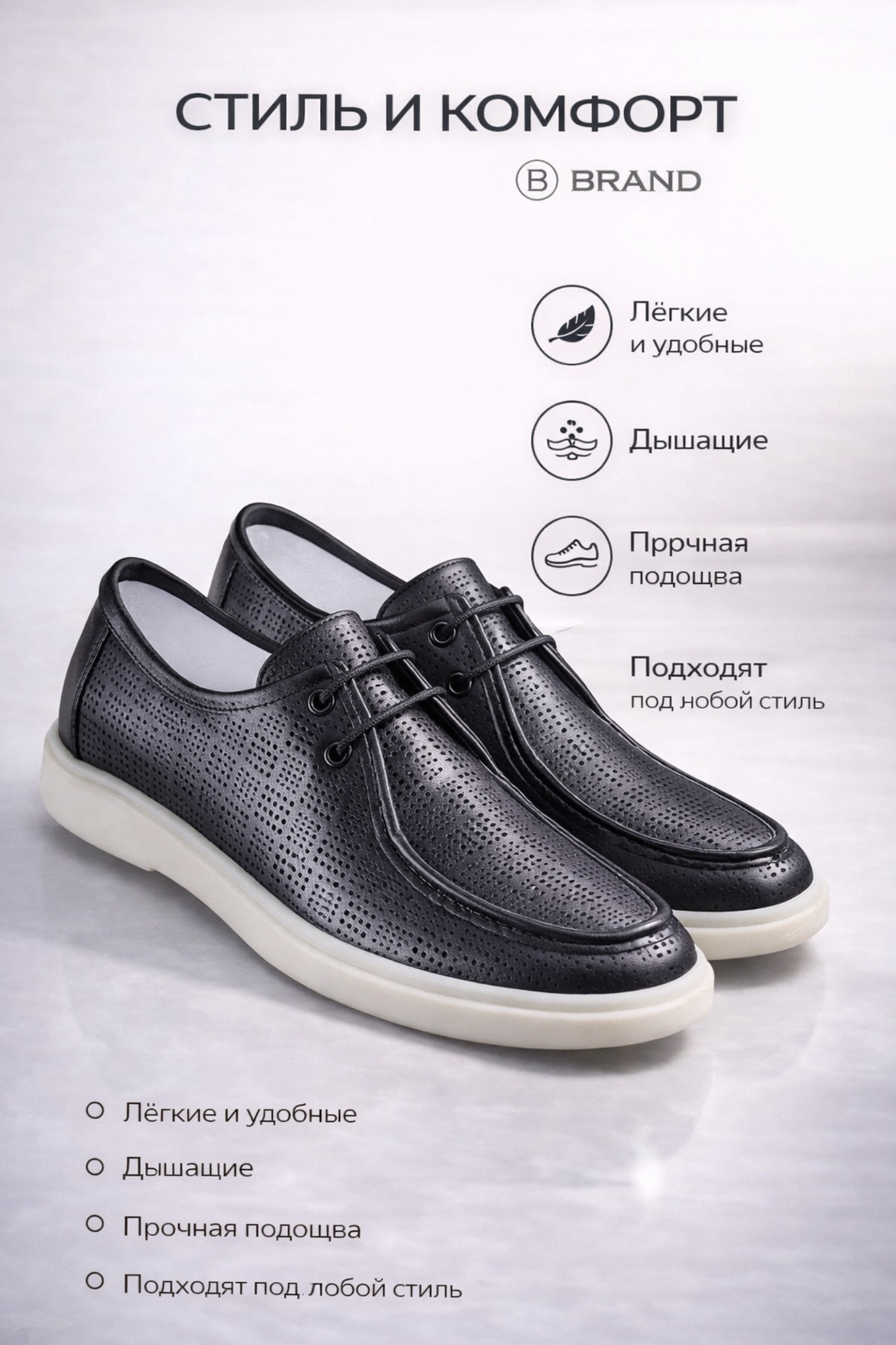 - Износостойкая светлая подошва