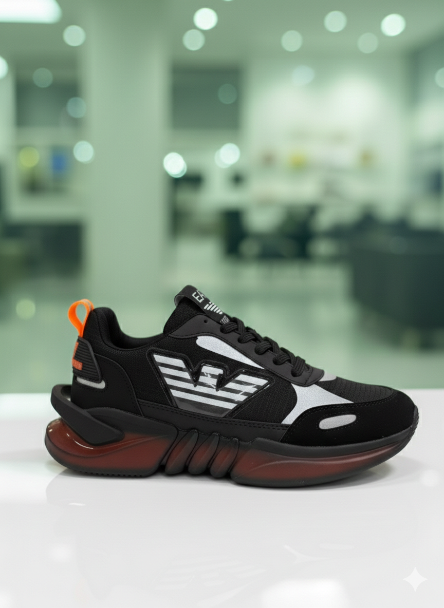 Амортизация: Массивная подошва с видимой вставкой в пяточной части поглощает удары и снижает нагрузку на стопу.