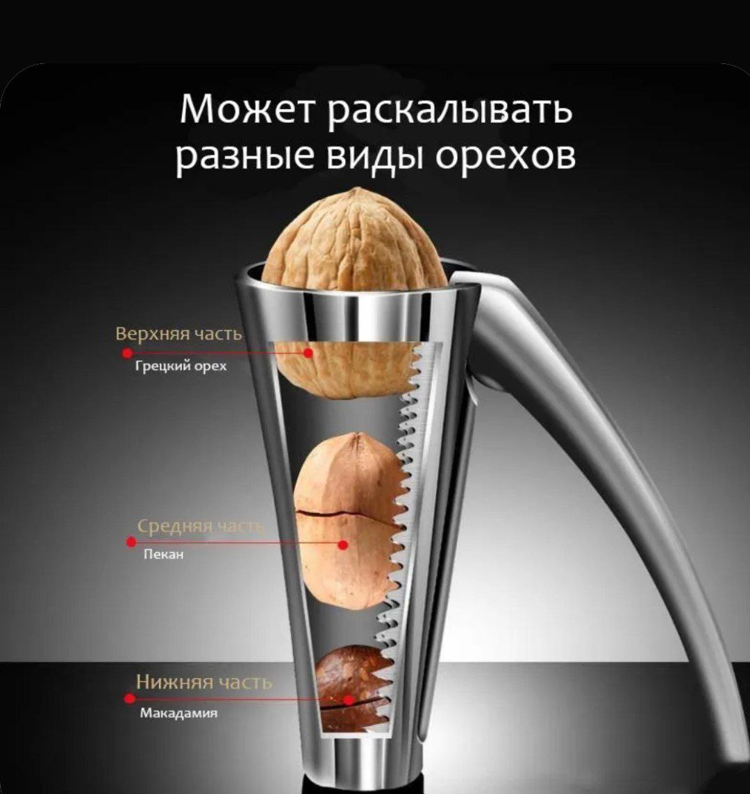 Оригинальный дизайн, будет гармонично смотреться в любой кухне. Пластиковая крышка, не даст осколкам рассыпаться и защитит вас от случайных отсколков скорлупы на тело и глаза. Теперь колоть орехи одно удовольствие. Орехокол Воронка станет незаменим на любой кухне. Орехокол превосходно подойдет для колки орехов разных размеров лесных, грецких и т.д. Этот универсальный орехокол займет достойное место среди аксессуаров на вашей кухне.