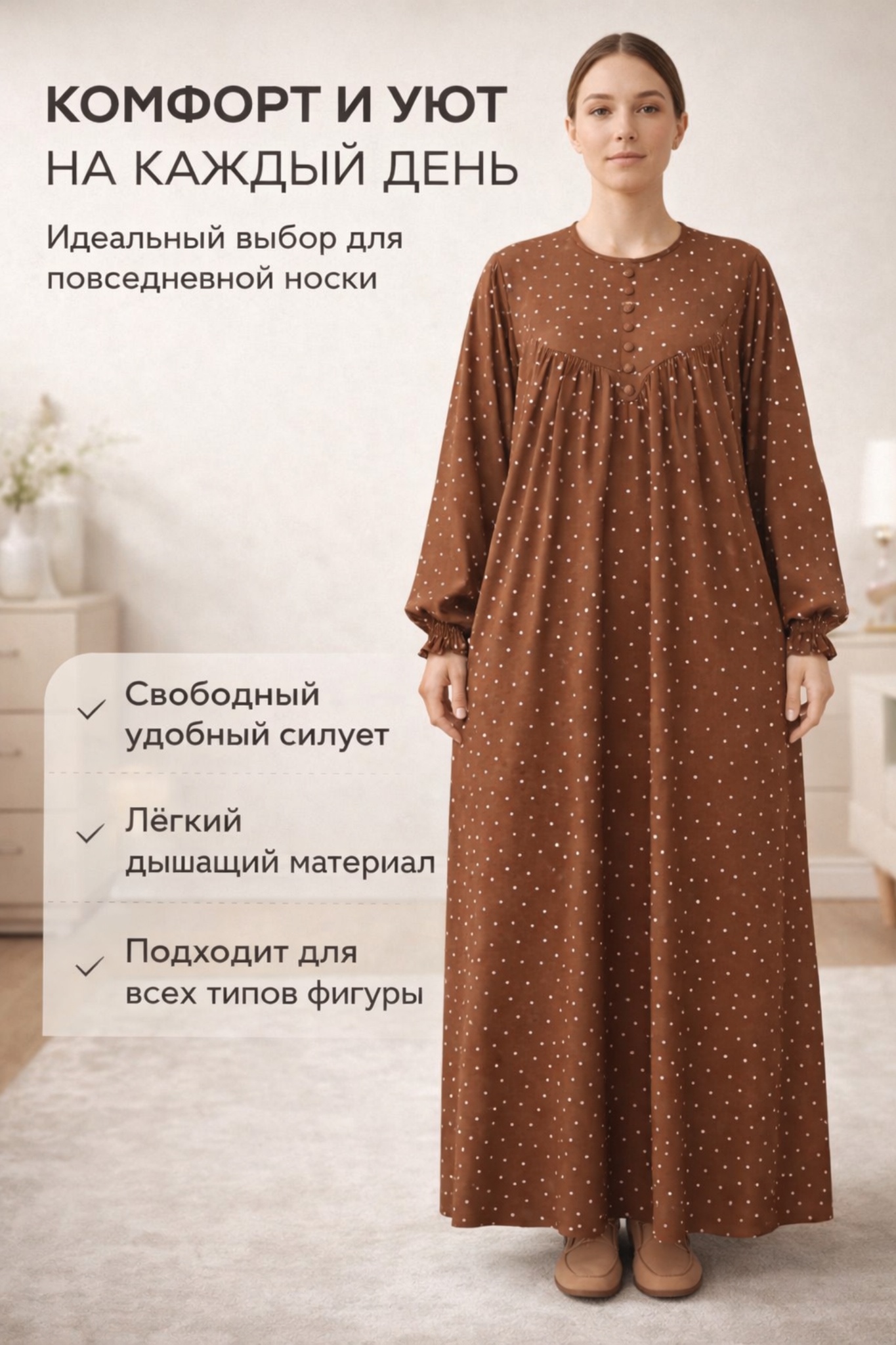 Универсальный фасон мягко скрывает нюансы и подчёркивает естественность