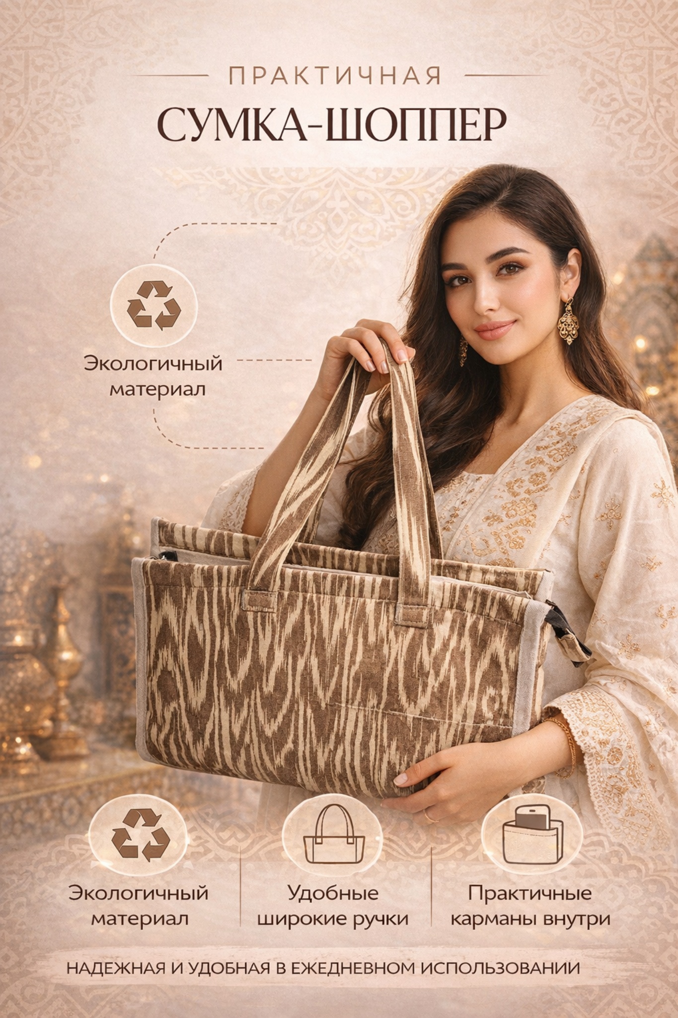 Сумка изготовлена из натуральной ткани, что делает её безопасной для окружающей среды и удобной для ежедневного использования.