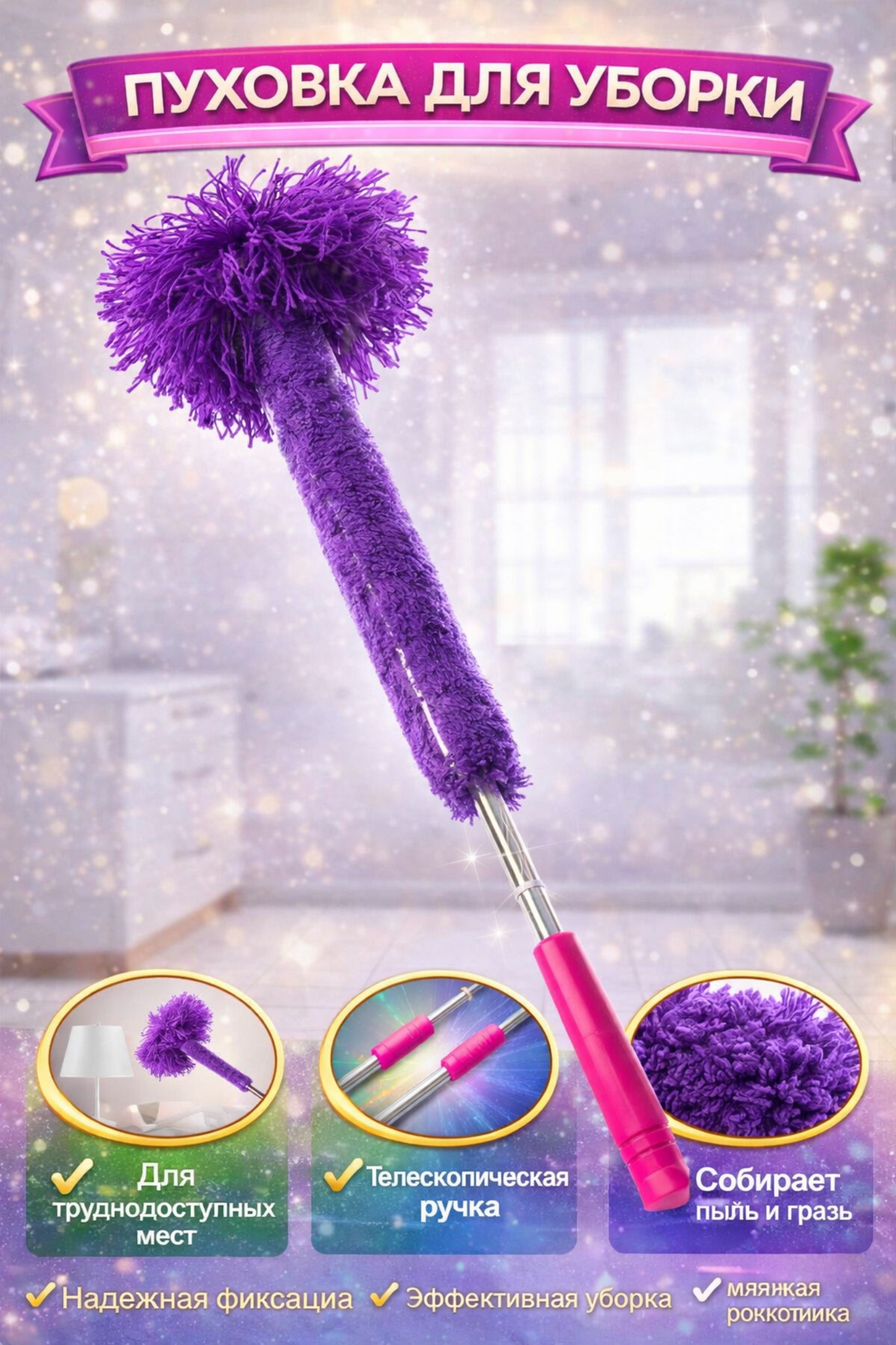 Легко очищает верх шкафов, полки, светильники, карнизы и другие высокие поверхности.