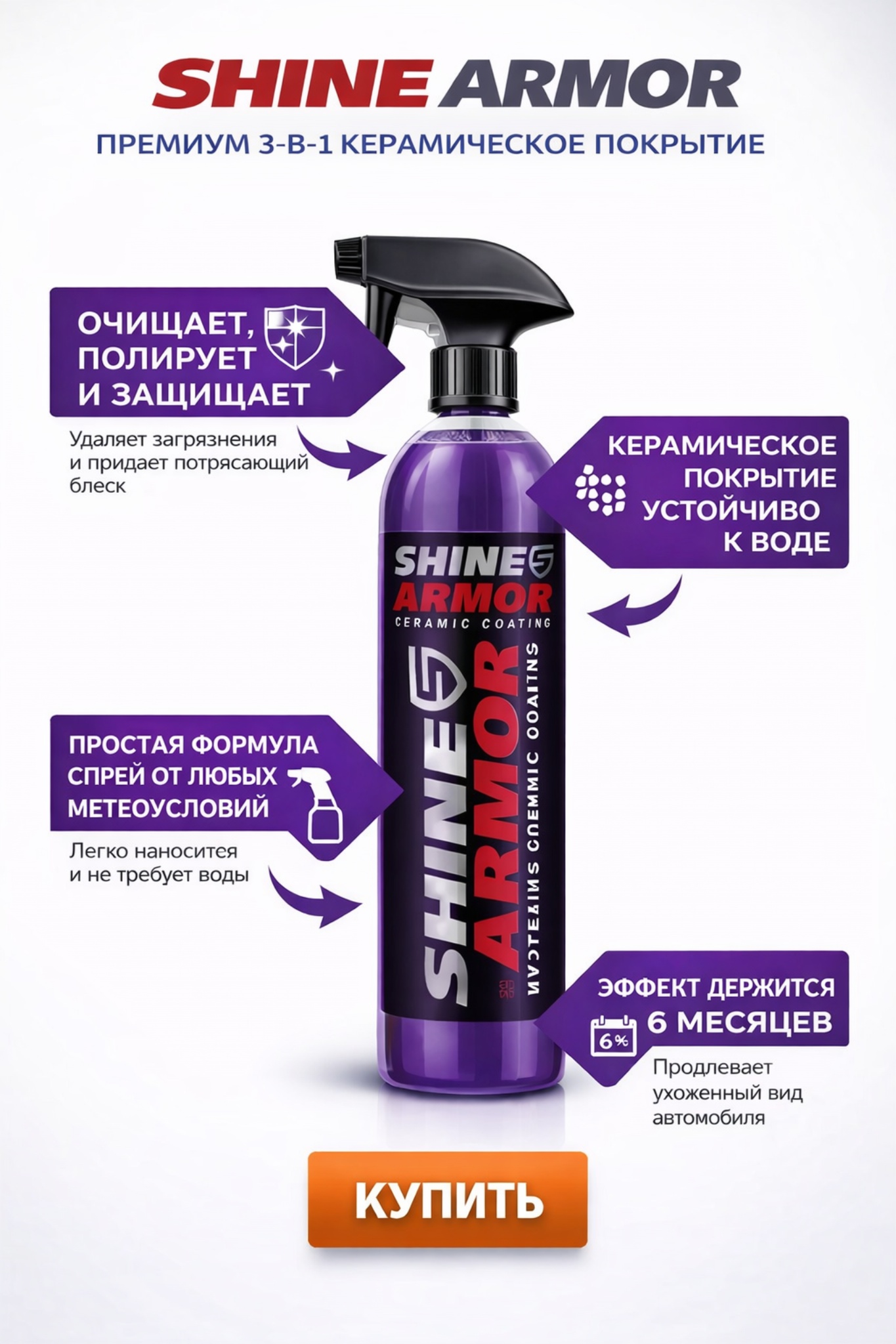 Защитное покрытие сохраняет эффект блеска и защиты до 6 месяцев.