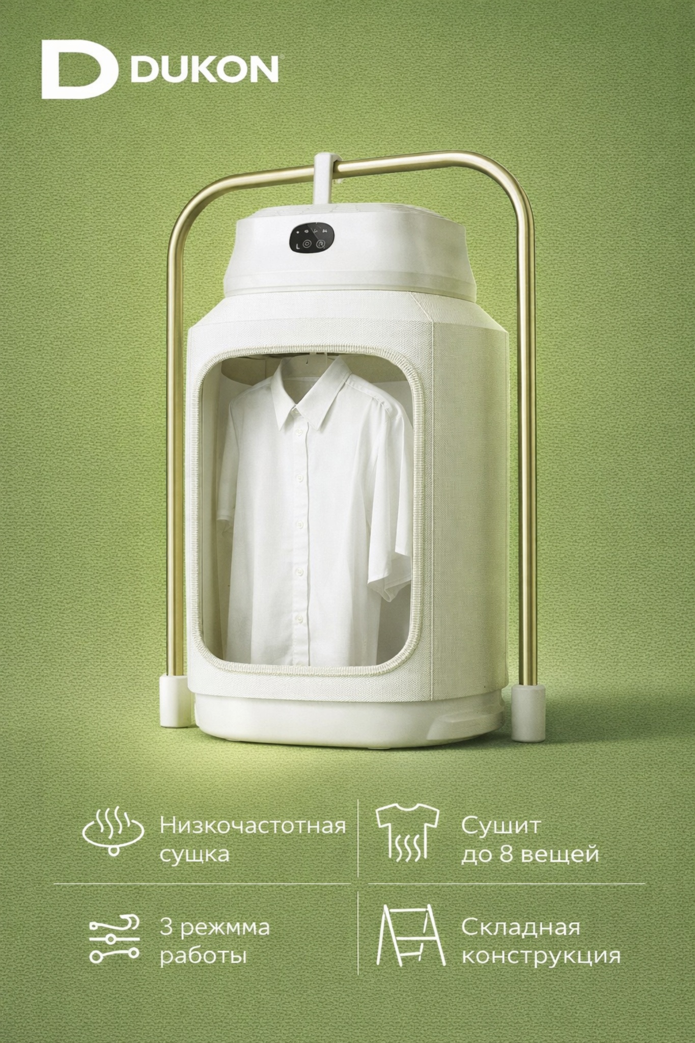 Сушит до 8 вещей одновременно