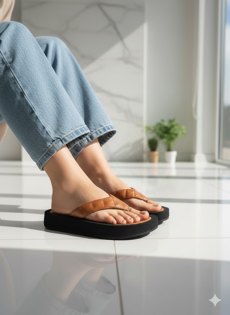 Мягкая поддержка: Широкие стеганые перемычки нежно фиксируют стопу, исключая натирание и дискомфорт даже при долгих прогулках.