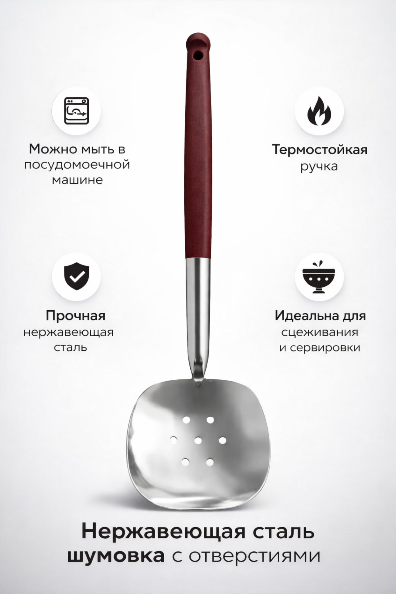 Используйте шумовку для извлечения продуктов из кипящей воды, бульона или горячего масла. После использования промойте водой или поместите в посудомоечную машину.
