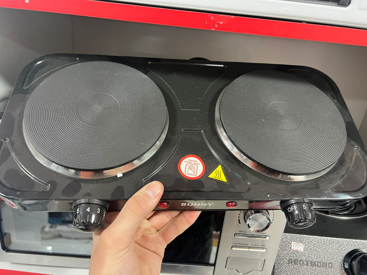 Электрическая плитка SUNNY с двумя нагревательными конфорками идеально подходит для повседневного использования в условиях ограниченного пространства.