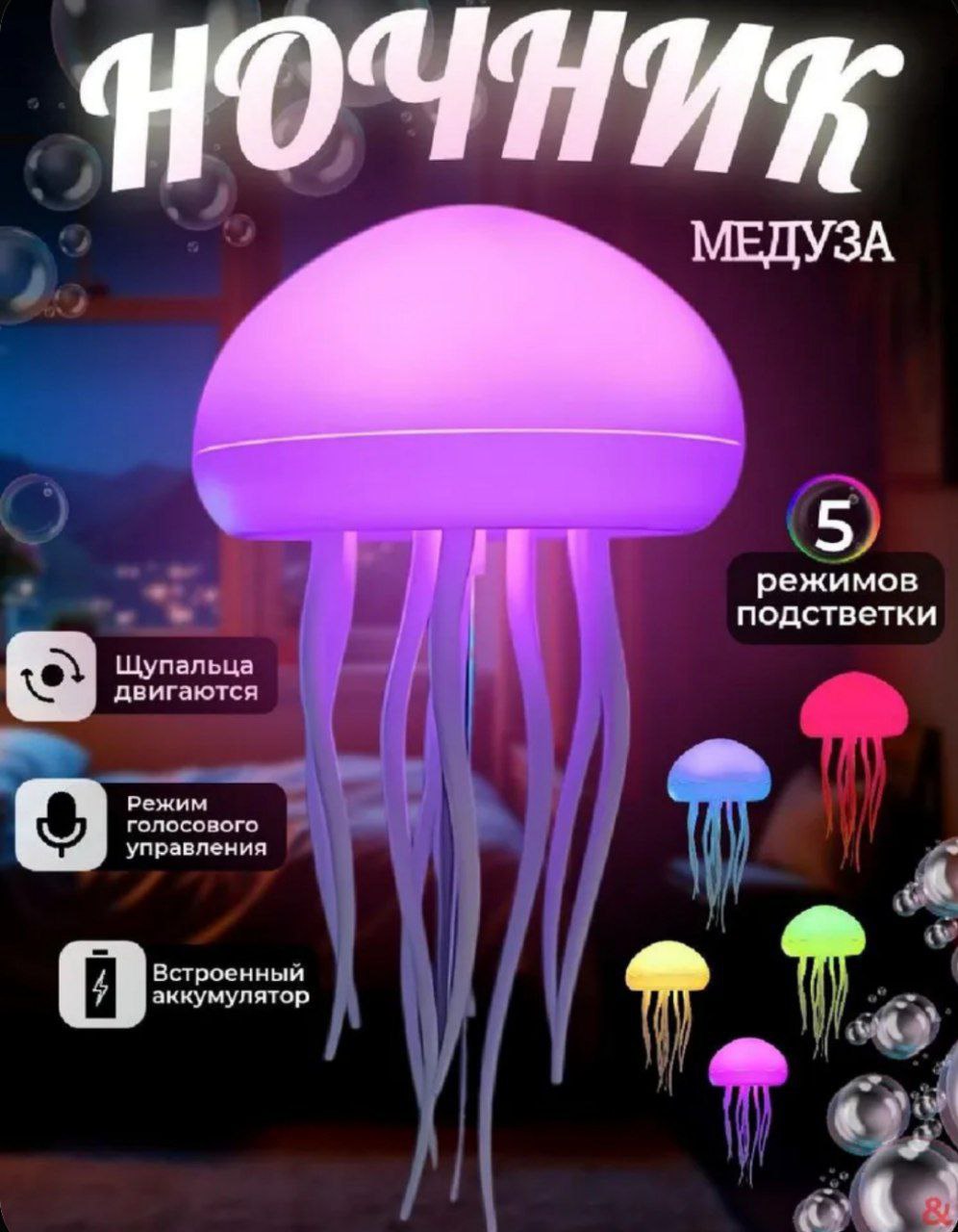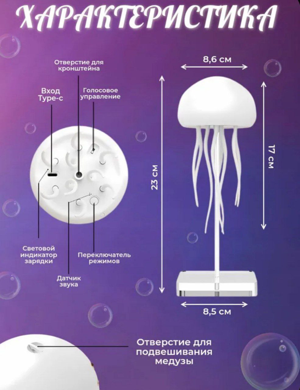 Его мягкий, рассеянный свет создает успокаивающий эффект, идеально подходящий для вечернего чтения или просто для расслабления перед сном. Оригинальный дизайн в виде медузы добавит нотке whimsy в любой интерьер, а приятное свечение сделает его любимым компаньоном для детей и взрослых. Этот ночник с подсветкой не только функционален, но и станет стильным элементом декора, который добавит индивидуальности вашему пространству.
