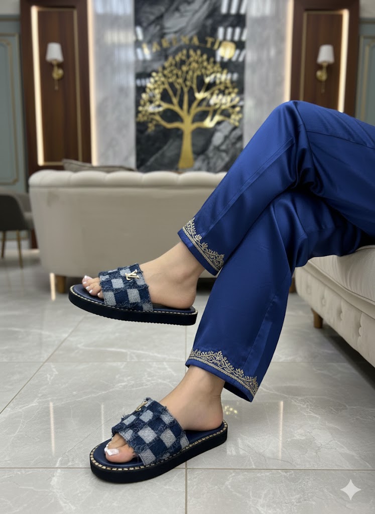 Заголовок: Дизайнерские шлепанцы на платформе — Трендовый Denim & Gold 2026