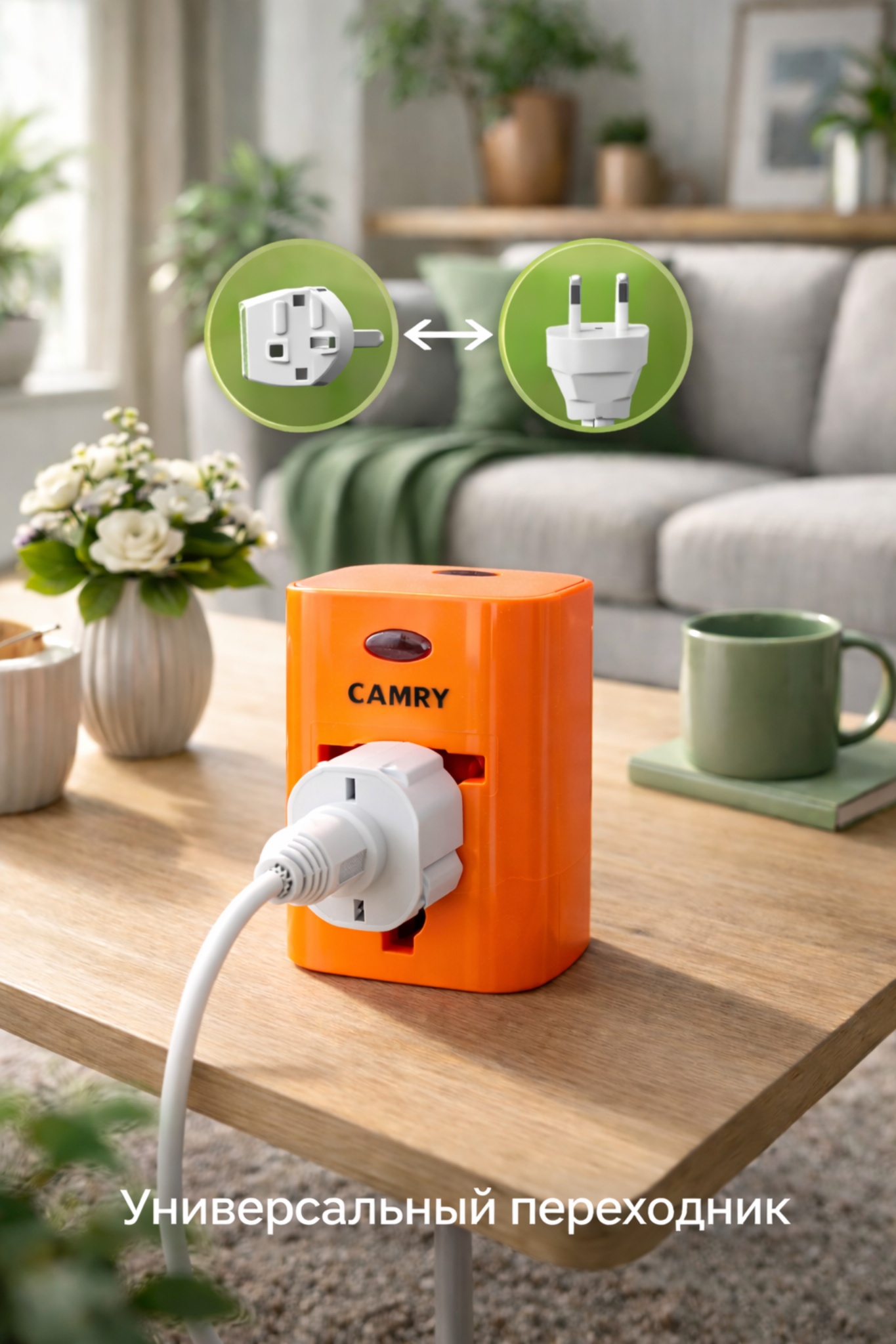 Позволяет подключать иностранные устройства к местным розеткам