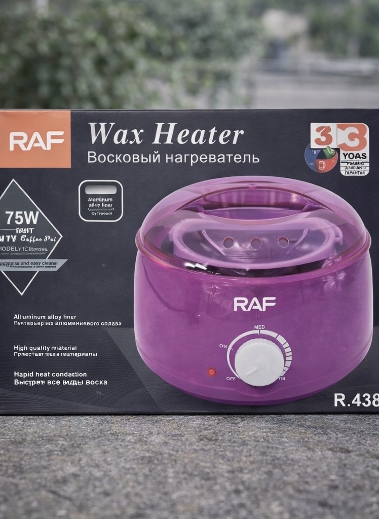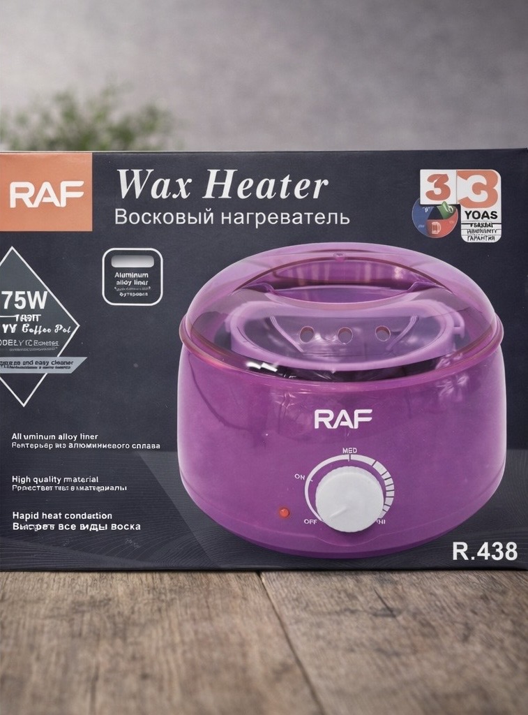 RAF Wax Heater R.438 — компактный и удобный в использовании воскоплав, предназначенный для быстрого и равномерного разогрева воска для депиляции. Подходит как для домашнего, так и для профессионального использования