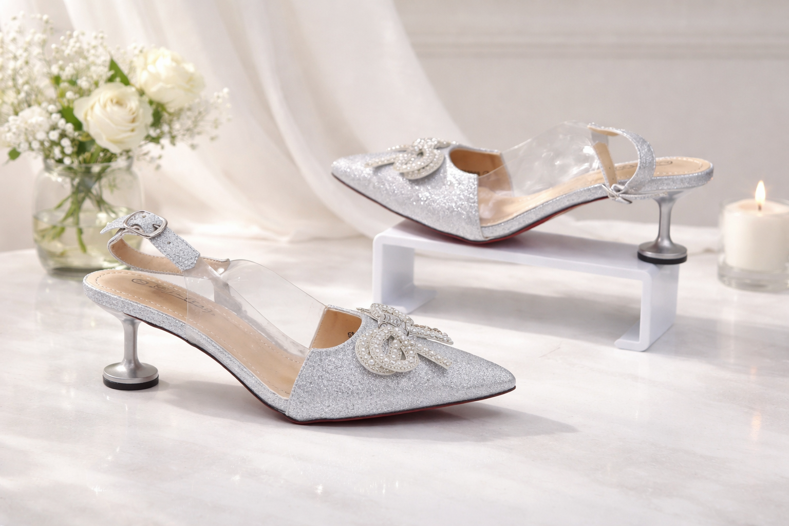 Открытая пятка с регулируемым ремешком обеспечивает надёжную фиксацию и комфортную посадку, а устойчивый каблук средней высоты делает модель удобной для длительной носки. Туфли легко сочетаются с платьями, юбками и классическими брюками, подходя как для вечерних мероприятий, так и для стильных городских образов.