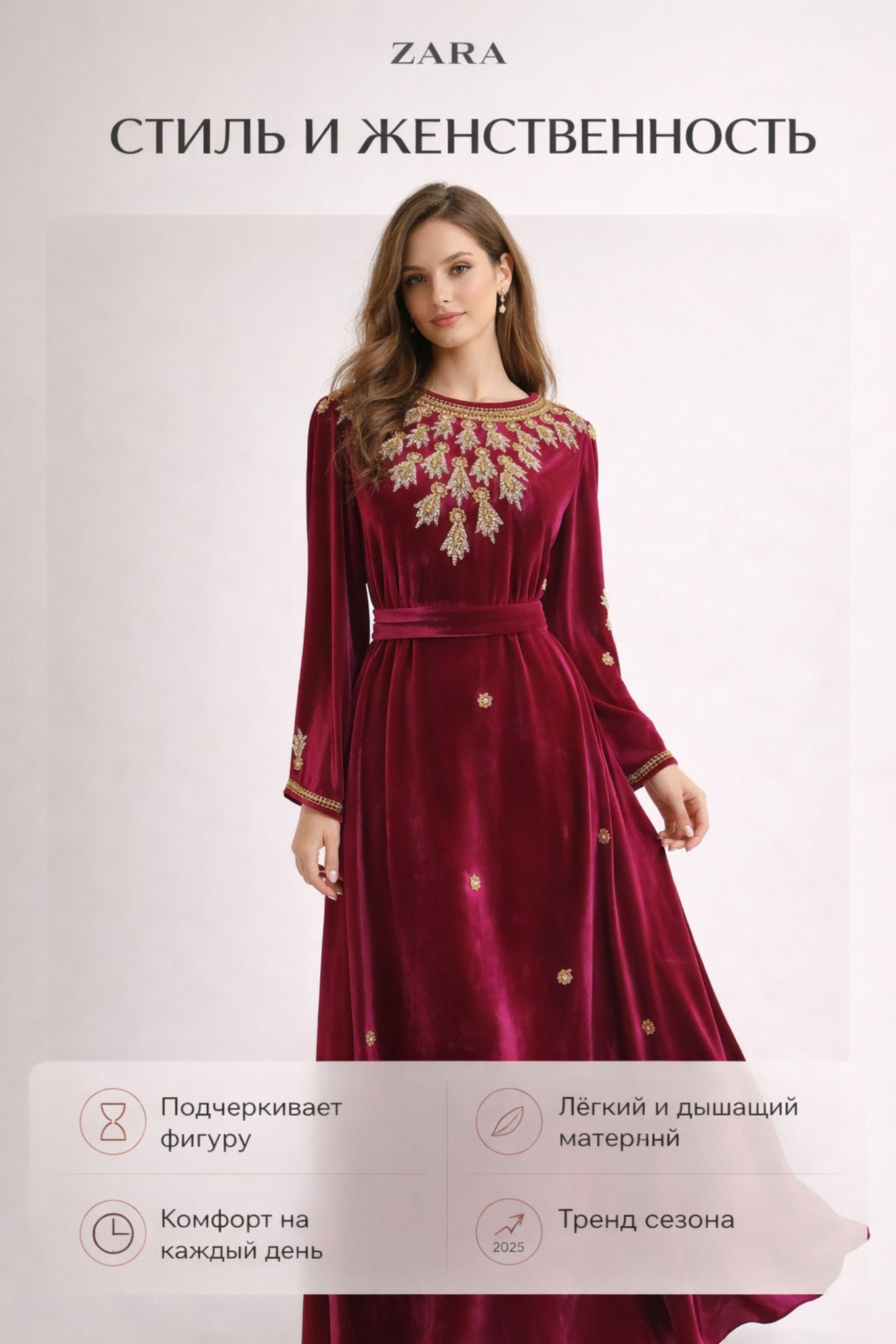 Акцент на талии создаёт изящный и женственный силуэт - Лёгкий и дышащий материал